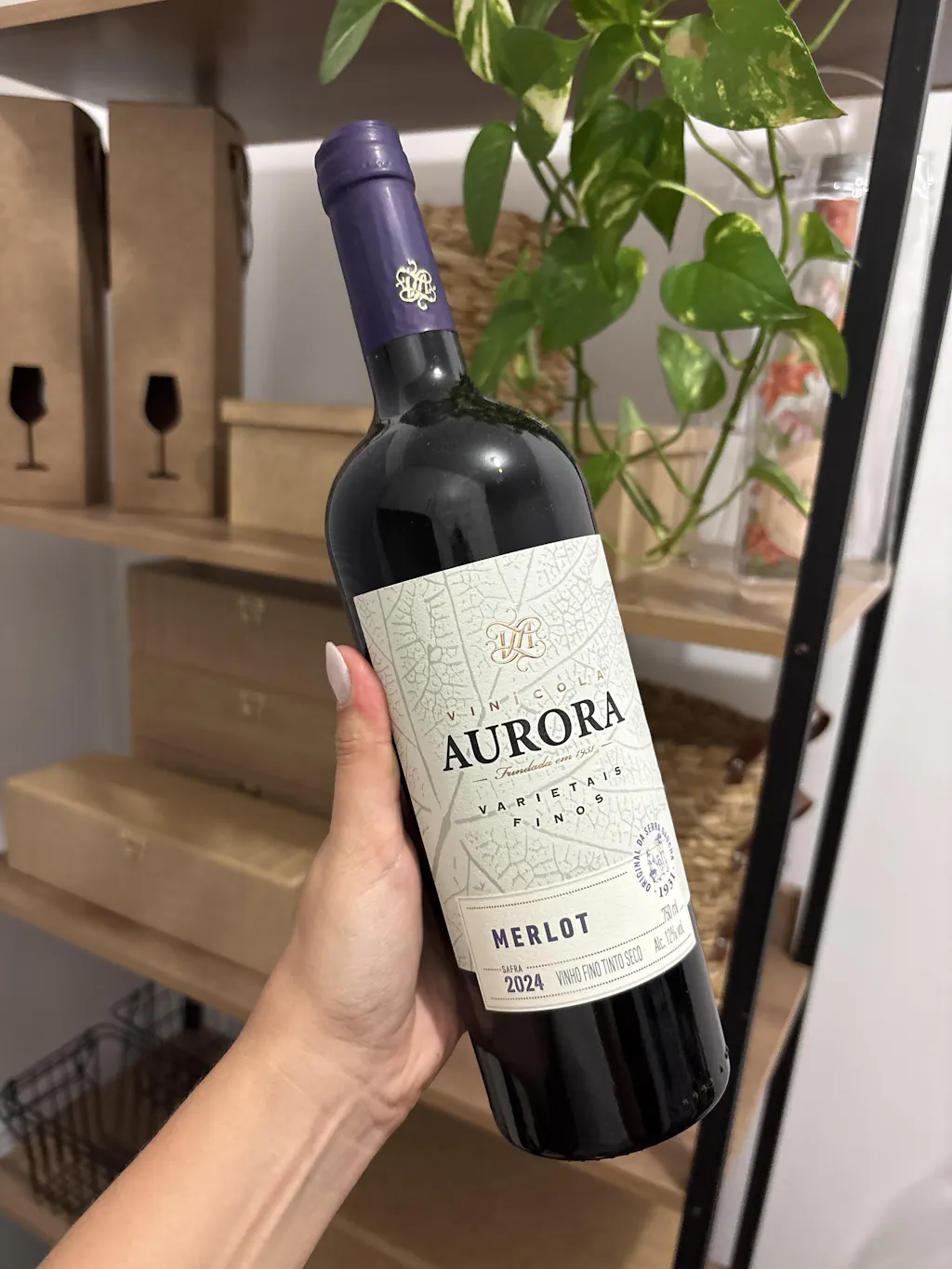 O vinho tinto Aurora Varietal Merlot conta com envelhecimetno com passagem por barricas de carvalho francês.